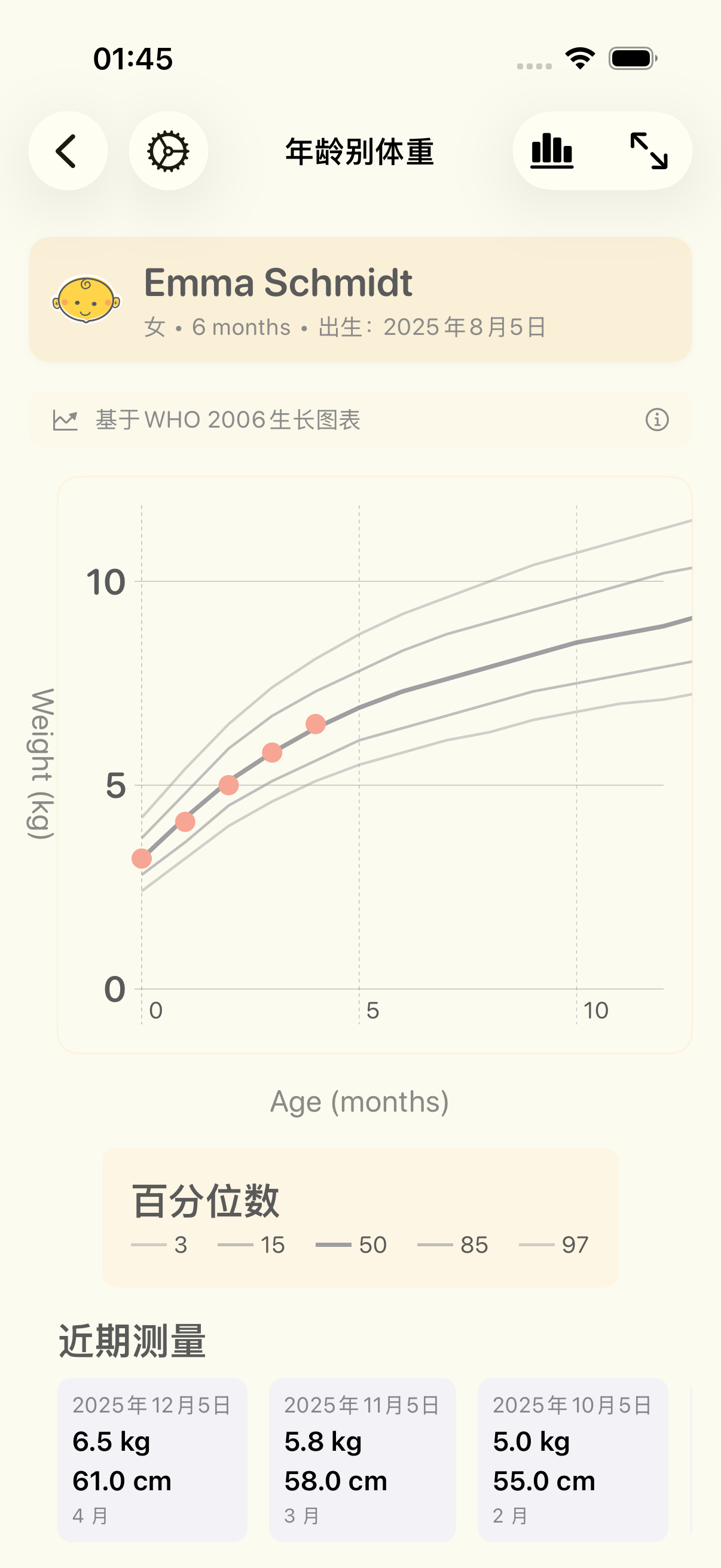 使用世界卫生组织(WHO)和CDC生长曲线,自信地追踪宝宝的成长。